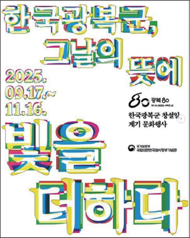 지난 9월 17일은 대한민국 임시정부의 정규군인 한국광복군이 창설된지 85주년을 맞이한 날이기도 했다. 기념관은 이를 기념하여 문화행사 〈그날의 뜻에 빛을 더하다〉를 개최했다. 1층 로비에서는 네컷사진 〈빛으로 남기다〉를 통해 기념사진을 남기는 공간을 마련했으며, 〈새롭게 빛을 새기다〉 프로그램에서는 한국광복군을 소재로 스크래치 아트 체험을 해볼 수 있도록 꾸미었다. 또한 한국광복군 코너가 마련된 상설전시실 1관과 연계하여 〈그날의 작전은 계속된다〉 스탬프 체험프로그램도 운영하고 있다. 한국광복군 계기 문화행사는 11월 16일까지 만나볼 수 있다.