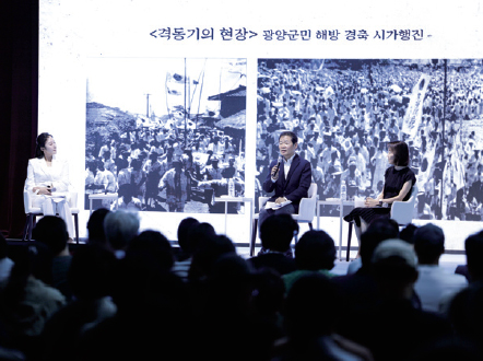 이번 토크콘서트는 『해방전후사』, 『독도 1947』 등을 집필한 해방전후사 연구의 권위자 정병준 교수(이화여대 사학과)와 방송과 유튜브에서 활약 중인 정치학자 김지윤 박사가 함께했다. 정병준 교수는 1945년 8월 15일 그날의 이야기를 시작으로 대한민국 임시정부 요인을 비롯한 우리 민족이 느꼈던 광복의 감정을 가감없이 관객이 나누었다. 김지윤 박사는 이에 더해 광복의 순간 세계 정세가 어떻게 변화하고 있었는지를 냉철하게 진단했다.