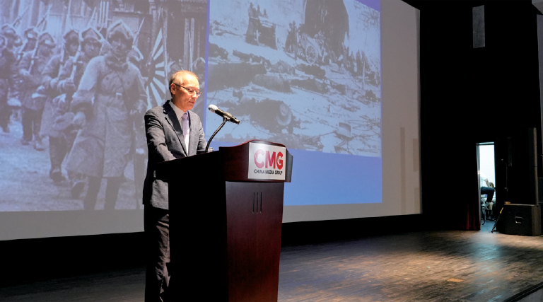 먼저 축사를 한 다이빙 중국대사는 “변화와 혼란이 뒤섞인 오늘날 세계 소수의 나라는 2차 세계대전의 역사를 고의로 왜곡하고 있다”면서 “중국과 한국이 건강하고 안정적인 관계를 지속적으로 지키기 원하며, 상호 공동 이익 추구를 통해 더 높은 전략적 협력 동반자 관계를 구축할 것”이라고 했다. 다음으로 축사를 한 김양 전 국가보훈처장은 “역사를 잊은 민족에게 미래가 없다”는 말을 인용하면서 “일부 국가와 세력이 역사를 함부로 왜곡하려 하지만 역사는 항상 평화와 정의의 편에 서 있으며 한국 국민은 역사를 기억할 것이며, 중국 국민 및 세계 평화를 사랑하는 사람들과 함께 더 밝은 미래를 맞이할 것”이라고 했다. 그 밖에 한국의 김진표 전 국회의장과 선하이슝 중국중앙방송총국장이 영상으로 축사를 했다.