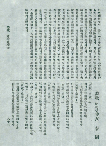 「팔 찍힌 소녀」, 『신한청년』 창간호 (1919. 12. 1.)