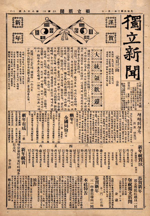 「원단삼곡」, 『독립신문』 제89호(1921. 1. 1.)