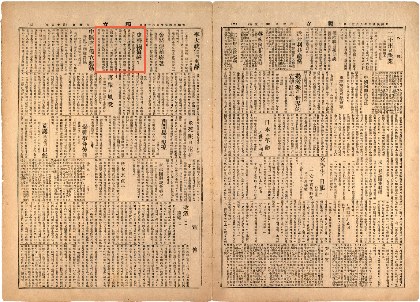 「사료편찬종료」, 『독립신문』 제15호(1919. 9. 30.)