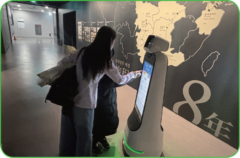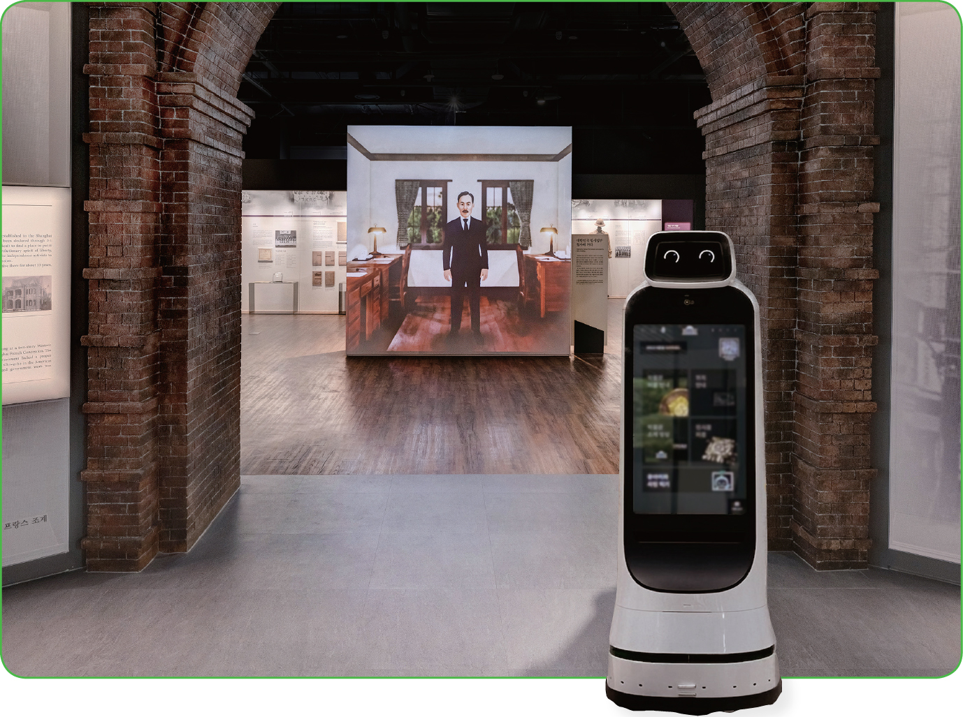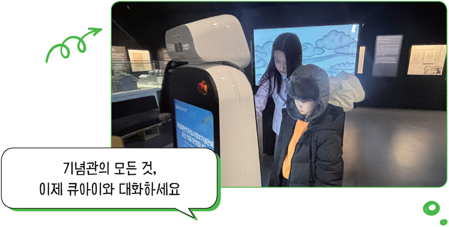 전시해설봇 ‘큐아이’ 는 기념관 곳곳을 자율주행하며, 전시해설과 다양한 안내 서비스를 제공하게 됩니다.